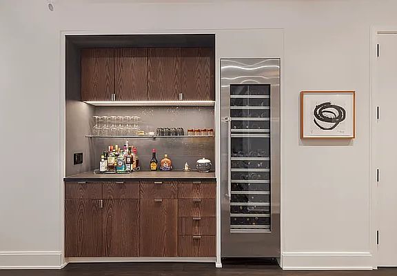 Other notable apartment features include solid Brazilian walnut floors, motorized window treatments, Lutron lighting throughout, a 12-speaker Sonos media system and a full sized washer/dryer. There is also a multi-zoned HVAC system controlled with Nest thermostats.