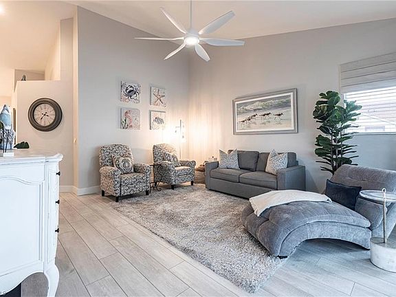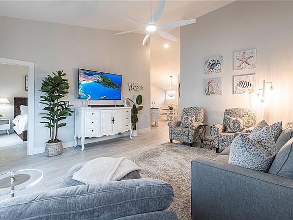 This top-floor, 3-bed, 2-bath coach home in Windsor Place at Berkshire Lakes offered turnkey furnished has been thoughtfully updated with designer touches, peaceful lake and fountain views, and the kind of quiet comfort only an upper-level unit can offer. With no neighbors above and volume ceilings throughout, this home is filled with natural light and an airy, open feel. Located at the front entry of the community with easy in-and-out access and additional guest parking just across the street, convenience is built right in. From the living room, lanai, and primary bedroom, you’ll enjoy serene western lake views and majestic sunsets—a true highlight of this special home. Inside, the home shines with a long list of upgrades, including Italian porcelain wood-style tile flooring throughout (2018), including the lanai, updated light fixtures, and fresh paint throughout. The split floor plan provides privacy for both bedrooms, and the primary suite boasts a large walk-in closet and an updated en-suite bath with dual sinks. The fully renovated kitchen (2018) boasts granite countertops, glass tile backsplash, soft-close cabinetry with pullouts, a custom pantry and garbage disposal (2020), and stainless steel GE appliances with a Bosch dishwasher. There’s also a coffee and wine bar for added convenience. The updated guest bathroom includes newer fixtures and toilets replaced in 2019. Essential improvements provide peace of mind, from the water tank (2018), washer/dryer set (2018), and new roof (2019) to the UV window film (2019) and A/C unit (2020). Other improvements include recessed lighting and a modern ceiling fan (2021). The attached 1-car extended garage includes extra cabinet storage and ample guest parking is located nearby. Beyond the home itself, Windsor Place offers a truly appealing lifestyle. You’re just steps from the community pool, yet tucked away for peaceful living, along with your choice to play tennis or pickleball. One of the most beloved features of this community is its network of walking paths around several large, picturesque lakes—perfect for morning jogs, evening strolls, or walking your dog. The location is ideal—just a short walk or bike ride to Publix, dining, a fitness center, bank, fast food, and more, with quick access to I-75, Marco Island, and downtown Naples. You’re also less than 7 miles from the world-renowned white sand Gulf beaches. Whether you're seeking a full-time residence or a seasonal escape, this move-in ready condo blends comfort and convenience in one exceptional Naples package.