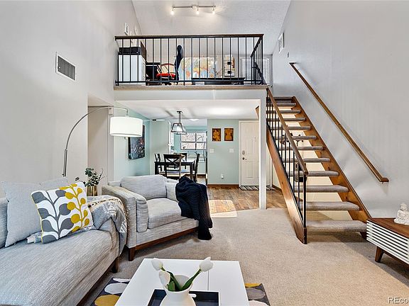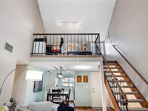 A captivating top floor penthouse with vaulted ceilings and a 2nd floor loft overlooking the main level. It is nestled perfectly in the heart of the high demand neighborhood of Telluride West. This home features an open floor plan, large primary bedroom with walk in closet, spacious 2nd bedroom with dual closets, a full bathroom, upstairs loft, natural light, skylight, large balcony, stainless steel appliances and so much more! Newer water resistant laminate flooring in the entry, kitchen, dining room, and hallways. From the balcony and back windows you can see the pool area. Includes 1 reserved parking space directly in front of the home and easy access to pool, hot tub, tennis courts and nearby park & trails, short drive to Red Rocks. Close to Downtown and to the mountains. Walking distance to Light Rail Station and Union Blvd’s Vibrant Shops, Restaurants & Pubs.
