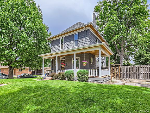 Upon arriving at this Sunnyside property you'll immediately notice the stately wrap-around front porch where North Denver Architecture meets Colorado lifestyle. This spectacular tree-lined corner lot is a neighborhood classic! Step in the original 1905 front door and your gaze will travel up a timeless quarter sawn white oak staircase. The generous living room has an updated ventless gas Victorian fireplace. Both the living room and adjacent dining room are bathed in natural light from large south facing windows. A pass through window allows that same light to enter the beautiful slate floored kitchen. The kitchen’s custom, aged fir cabinet doors and maple counters are complemented by the newer stainless steel appliances and bright paint. On the main floor you’ll also find a stylish ¾ bath and a sun filled family room/office with french doors opening to a stunning backyard. The off street parking, fire-pit and raised garden beds allow for intimate outdoor living tucked away from the city hubbub.Upstairs, the bright master bedroom has an adjacent sitting room with an expansive closet containing laundry hookups. The walkout teak deck off the third bedroom upstairs is perfect for watching Broncos games and enjoying an evening beverage. Soak away your stress in the slipper clawfoot tub of the recently remodeled marble bathroom. Need more space? Head down to the comfortably finished basement with a separate entrance making it perfect for an income opportunity or extended family stays. This self-contained spacious area features custom cabinets in a kitchenette with an incredible leathered stone counter, living room, bedroom, ¾ bath, laundry and a wine cellar or dry sauna room. The 6,300 square foot lot is zoned for an ADU, furthering the potential for income opportunity. Updated systems include new sewer, waterline, electrical, hot water heater, along with well maintained Buderus Boiler. It’s been over 30 years since this gem last hit the market!