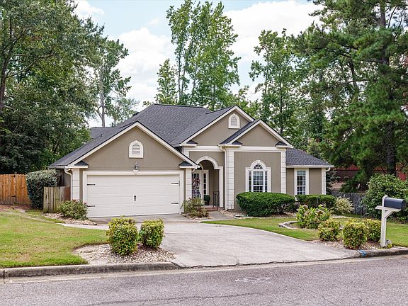 with split bedrooms, eat-in kitchen, formal dining room and a walk-in pantry that could also be used for a great home office. Upgrades include new roof replaced, newer water heater, HVAC is 3 years old, new leaf filter system, gas logs are 2 years old and hall bath with updated tile surround walk-in tub. Primary bedroom opens to back porch and features a fabulous custom bath with double vanity, tiled shower, extra cabinet space and a large walk-in closet. Garage offers ample storage and there is a side parking pad. Covered rear porch is perfect for enjoying peaceful evenings overlooking the back yard. So close to schools, shopping, medical, interstate and Fort Gordon.