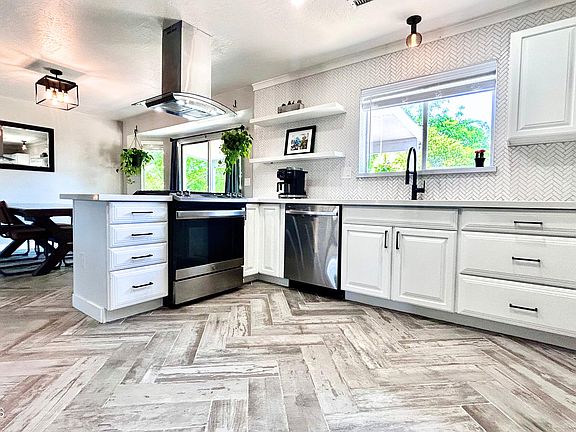 - Ceiling Fan(s), Solid Surface Counters, Kit/Din Combo, Kitchen Island, Walk-In Closet(s)