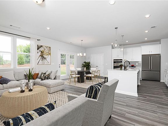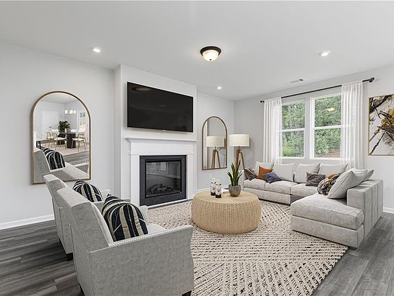 Stanley Martin Homes presents The Tyndall, a thoughtfully designed two-story home that blends functionality and style. Just off the foyer, a convenient pocket office provides a quiet spot for work or study. The open-concept main level connects the kitchen, family room, and dining area, creating a bright and inviting space for gatherings. The kitchen features a large island, abundant cabinet storage, and a spacious pantry, while the family room centers around a cozy electric fireplace. The dining area extends to a rear patio—perfect for outdoor entertaining or relaxing after a long day. Upstairs, the primary suite is a true retreat with a spa-inspired bath featuring a soaking tub, dual vanities, a seated shower, and a massive walk-in closet. Three additional bedrooms, each with their own walk-in closet, and a centrally located laundry room complete this versatile design. You’ll love the thoughtful layout and attention to detail that make this home ideal for modern living—schedule your visit today and experience the Tyndall for yourself! Located in the desirable Annsbury Park community in Lilburn, enjoy proximity to great schools, parks, shopping, and dining. Community amenities include green space and a future pocket park for neighbors to enjoy.