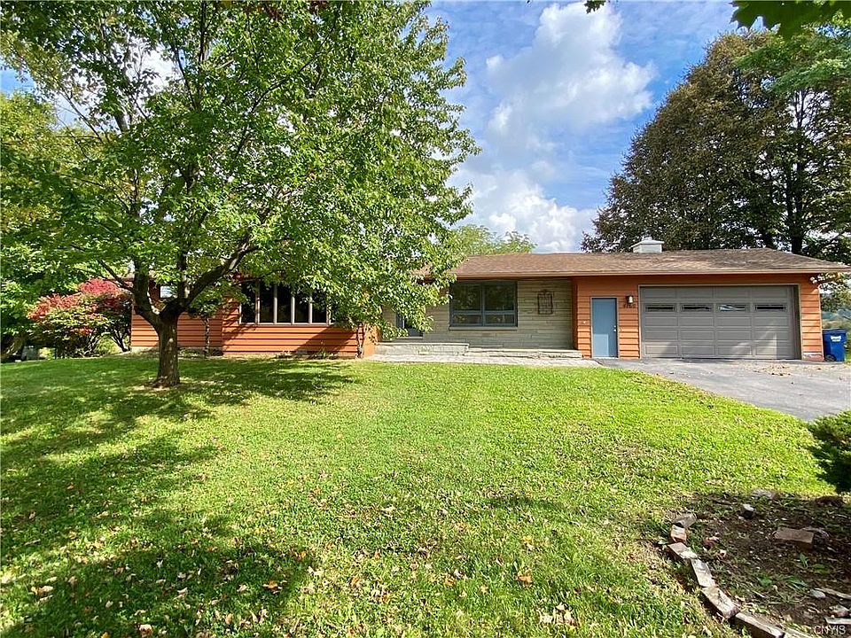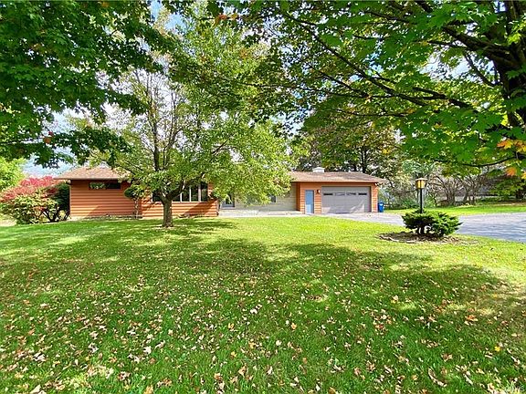 Offers Due 5pm 11/10. 3620 Square Foot Ranch with an 8 car garage in Fayetteville - Manlius School district with no homes behind! Lot measures 150 across and 260 feet deep .90 acres. This home offers endless possibilities for living situations - In Law - Hobby space and more! The main level offers 2492 Sq ft, 4 bedrooms, 2 full baths, 1 half bath and 2 car attached garage. Enjoy hardwood flooring in the formal Living Room, Dining Room and 3 of the 4 bedrooms. The kitchen opens to the huge great room addition that offers 2 walls of windows! The full walk out basement has a large family /game room, 1/2 bath, office or possible 5th bedroom and a wall of windows overlooking the beautiful back yard! The walk out basement also offers a well lit oversized 6 car garage addition. The basement addition offers a 3 garage overhead doors that are extra deep bays to allow for a total of 6 cars. Long flat driveway offers plenty of space for extra parking. Improvements include Exterior painting, new front & garage door, Stickley Tiles at entry, sealed driveway, furnace replaced in 2007, Hot water tank 2018 & Central Air. Hurry ...This flexible floorplan will not last! 2021-11-11