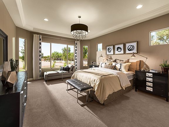 This home has staggered Maple cabinets with Espresso stain, premium two-tone paint throughout, tray ceilings in the great room & master bedroom & a bay window in the master suite. Upgrades include an extended covered patio & backyard turf package.