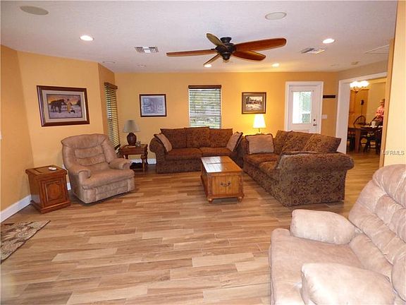 Spacious 5 BR 3.5 BA family home with 3,138 SF of living area on 5 beautiful acres in Lake Gentry Farms. Charming and expansive, this home will greet you with warm wood tile from entry to all living areas on the first floor. Features 5 bedrooms plus a large bonus room upstairs with a walk-in closet should you need yet another bedroom. Or just relax with a book in the window seat overlooking the pond and the woods beyond. The updated kitchen boasts granite counter tops, breakfast bar, upgraded oak cabinets, under counter mount SS sink, vaulted ceiling and cabinet pantry. Master bedroom has all the space you could need with tray ceiling and walk-in closets. Master bath offers large garden tub, double sinks and separate shower with frameless glass enclosure. Office/Den for that extra space to work at home. Southern style porch overlooks the shaded front yard. Covered back porch is a great place to sit and enjoy your morning coffee and view of the pond. Only room on second story is bonus room. Outbuildings for storage, completely fenced and ready for your family. Located within half mile of Canal 33 public boat ramp and access to Alligator Lake chain. Make your appointment to see it today and come live in the country.