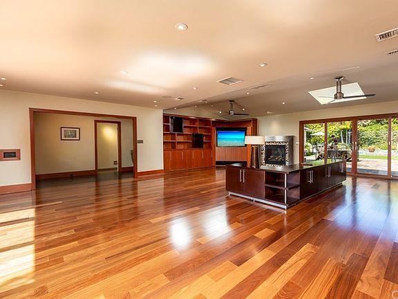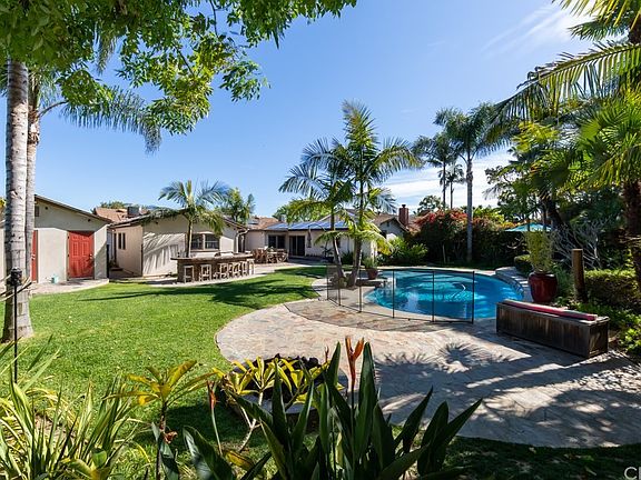 Lovely home on interior street, tucked into exclusive Lakewood Country Club. Charming frontage with large windows invite you in this upgraded and open concept home. The unique features begin as you enter the living room/great room with large fireplace & a wall of built-ins, The great room overlooks the gourmet kitchen with all amenities desired, custom cabinetry, oversized island with quartz counter, glass back splash, dual Sub Zero refrigerator/freezer, & stainless appliances. The formal dining room is in perfect proximity to the kitchen & off of the great room, completing the indoor-outdoor experience. Off the kitchen is a large office, ample closets & ¾ bath accessible to the kitchen & the yard/pool. This could also be used as a 4th bedroom. The other bedrooms are separated by a long hallway incorporating a central jack & Jill bath, laundry area, & storage. At The end of the hall is the Master suite with an updated bath overlooking the tropical yard. A small dressing area, cedar lined closets & a sitting area or yoga/workout space complete your private oasis. The resort like yard has multiple entertainment areas, large BBQ Island with fridge, gas fire-pit area, paved area for dining, all overlook the pool, waterfalls & Jacuzzi, enhanced by surround sound & lighting. In addition to the main house there is a 300 sq ft permitted casita with its own patio & entrance. Oversized 2 car garage, storage w/work area complete this home.This is a home you could happily be isolated.