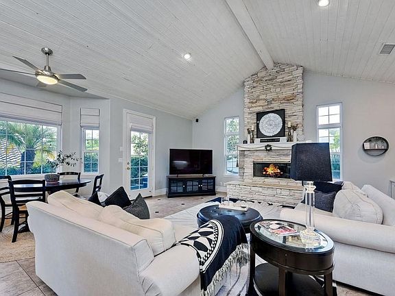 Absolutely stunning Custom Olde Carlsbad Home on an extremely private lot. Enjoy single level living with a bonus suite upstairs. This pristine home was crafted with attention to detail at every turn. As you head down your private driveway the world drops away. Open the front door and you enter into a magnifcent foyer with an amazing turreted ceiling. The formal living room and dining room offer solid hard wood floors, a gorgeous marble slab fireplace, the highest ceilings, crown molding, plantation shutters. The kitchen and family are the ultimate in beautiful but comfortable living. White and light with a gorgeous stone fireplace as a focal point. Loads of built in cabinetry, wood detail ceiling, lovely granite, and stainless appliances. The primary suite is beyond big and comes with an attached retreat/office. Primary bath and walk in closet are luxurious. The laundry room is oversized and comfortable. Even the garage has high ceilings and plenty of storage. RV parking possible. Currently set up as a 3 bedroom plus office retreat. Can be a 4 bedroom. If you are looking for a home with privacy, no HOA or Mello Roos in an amazing part of Carlsbad....this is the home for you! Just minutes to the beach, Carlsbad Village, Freeway access, and amazing Carlsbad schools.