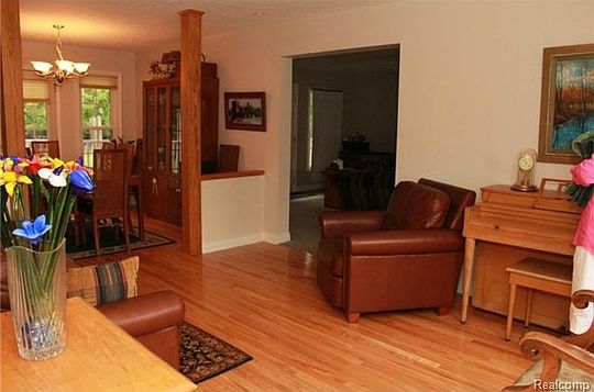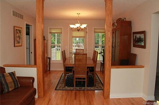 Can you get a six bedroom classic colonial on nearly 2 acres of land with a fenced yard, appliances, and finished daylight basement for about $90 per sq ft? Yes! This beautiful home has Bellawood hardwood floors with a 50 year warranty, a huge master bedroom with a sitting room/office and his n' hers walk-in closets. Wood burning fireplace with an over-sized custom wood mantle for cozy fall evenings. Second floor laundry with ceramic floor. Finished daylight basement. Enjoy the views and the wildlife from your beautiful covered back porch overlooking the huge fenced yard and surrounding woods. What a peaceful place to unwind at the end of the day. Don't see a propane tank? Of course not! You're on natural gas! Perennials and fruit trees, a spot for your vegetable garden and even a grape arbor that's overflowing with grapes. All this and a home warranty too? Yes! Don't let this one get away!