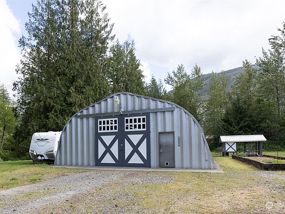 Welcome home to wide open spaces! The pride of ownership is evident from the moment you enter onto this property! Situated on 2.66 LEVEL ACRES surrounded by a buffer of evergreens, you will find the perfect package including a well maintained RAMBLER style home & 1600 SQ.FT. MONSTER DETACHED GARAGE/SHOP. Home has 2-car attached garage, newer exterior paint & roof, vaulted ceiling, open flr plan w/new vinyl plank flooring throughout, kitchen w/bf bar, quartz counter tops & SS appliances, huge entertainment sized deck w/bench seating, chicken coop, raised garden beds & RV pkg. Plenty of room for toys in the detached garage w/16' ceiling, wood stove, 5500 lb car hoist, 110 & 220v power + 3-phase 220v power. Close to SR2 for easy commute!