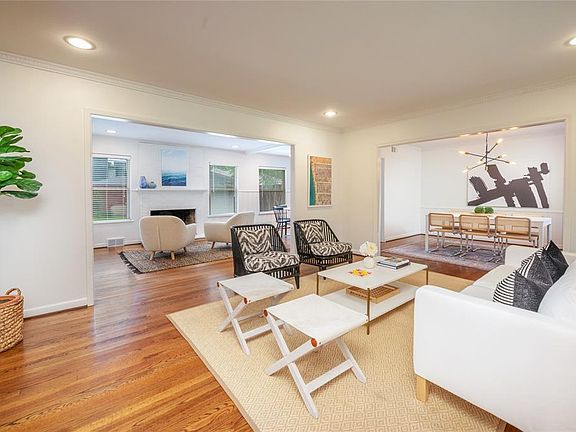 Charming home in Midway Hollow. Open floor plan, spacious living open to dining and den. Restored original hardwoods. Private master retreat upstairs, with large walk in closet and master bath with two vanities, dual shower and soaking tub. Two bedrooms downstairs each have full bathrooms. Large spacious backyard.