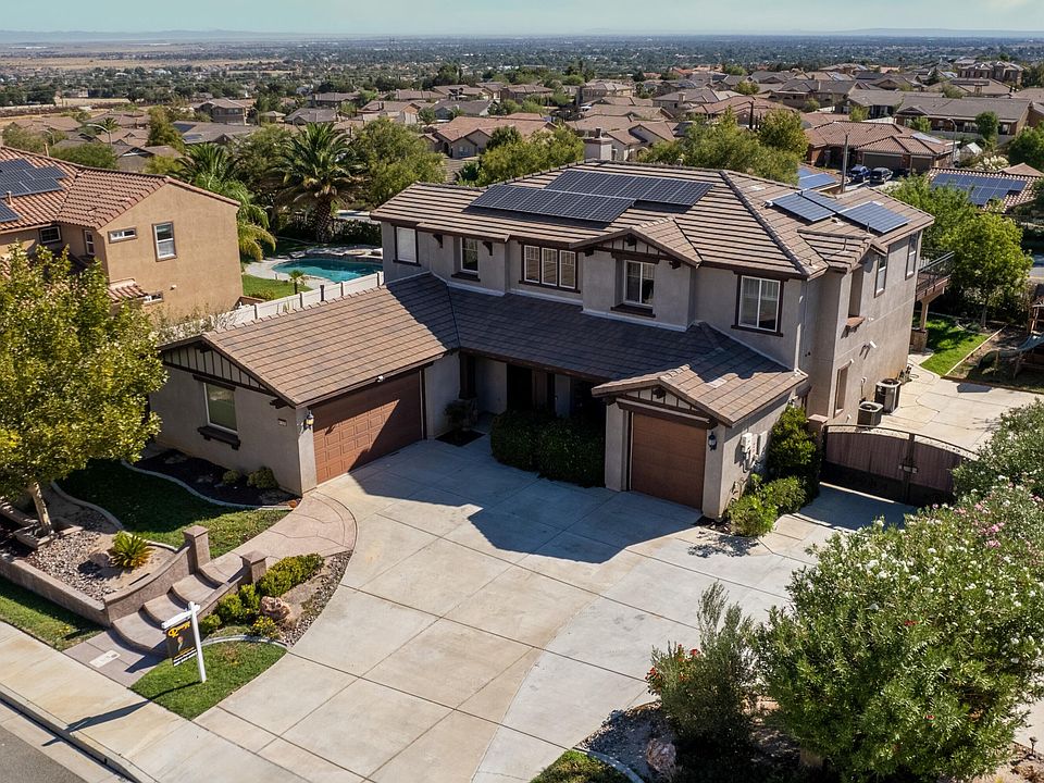 Be Welcomed to this Stunning Turn Key Pool home in West Palmdale. As you enter be greeted by the gorgeous high ceilings and amazing natural light illuminating from the multitude of windows throughout. Enjoy the foyer that opens to the family space and formal dinning area. Next enter the open concept living space with a beautiful fireplace, sliding door access to the back yard and the kitchen. This kitchen serves as the heart of the home, showcasing elegant flooring that exude warmth and sophistication. The ample cabinetry provides both functionality and style, offering plenty of storage for all your culinary needs. You cant miss the large island with the built in sink perfect for entertaining. You'll find a down stairs bedroom and full bathroom with a sink/ tub combo. Make your way upstairs and be greeted by a spacious loft great for additional office space or even a theatre area. Be relaxed as you enter the primary bedroom with attached ensuite and balcony access. Next fine 3 more generously sized bedrooms and another full bathroom. This beautiful residence is designed for comfort and convenience. Venture outside to discover a sizable yard, RV access, a luxurious gated pool and spa, perfect for relaxation and entertaining, making this home a true oasis for all.