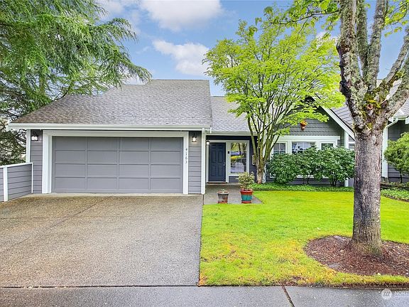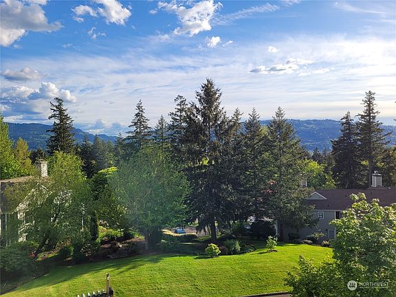 VIEW of Issaquah Alps is extraordinary!!! A peek-a-view of Lake Sammamish too. You get a sense of being up in the trees looking out to the spectacular PNW. RARE and SPECIAL to have this view, new large deck w/glass rail AND a 2 car attached garage. All main level living with Primary suite that includes view, walk in closet, double vanity. Den with front yard view and a 1/2 bathroom nearby. Living room has 8 windows for plenty of light and a slider door to deck with Awning. Kitchen has a small cozy eating nook with door to deck to enjoy morning coffee. Full size W/D on main. Lower level features bedroom, family room, storage. Spacious home next door to Town Hall. 55+ age restricted gated community