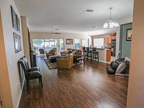 Just what you have been waiting for! This lovely very well maintained 3 Bedroom/2 Bath home boasts a warm open floor plan with many upgrades. Enter the home to an amazing great room, with gorgeous laminate wood flooring and views of the over-sized screened lanai. The Backyard is enclosed with privacy fence and beautiful lush landscape for a staycation atmosphere! Enjoy entertaining in the spacious Kitchen with Corinne counter tops, and tons of cabinet space. The Master bedroom opens to an amazing en suite bathroom with double sinks and over sized walk in closet! The Garage is also over sized to give plenty of room for your vehicles. This home has been keep immaculately by the original owner!