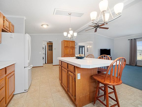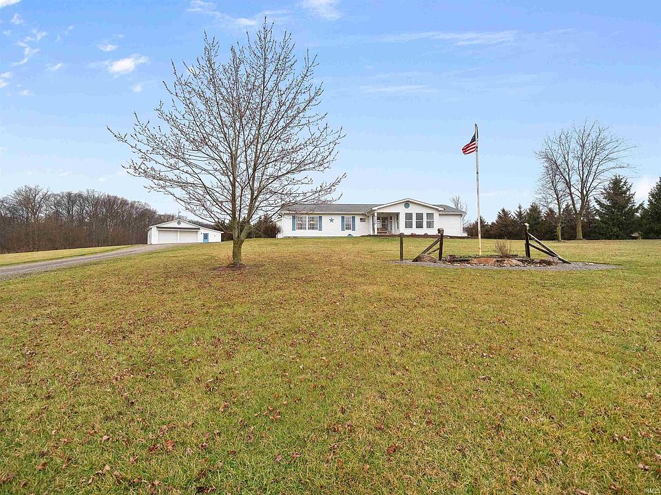 What a rare find in the country! Well cared for, 1 owner, 3BR 2.5 BA, one story home nestled on approximately 3.3 Acres. If you've been looking for space inside and out, this is it! The spacious kitchen boasts lovely cabinetry and countertops, large kitchen island/breakfast bar with seating, pantry cabinet with pull out shelves, and all appliances remain with the home. This opens up to the family room area and separate formal dining room. Plenty of room to hang out with the 13x17 living room and a 4 Seasons room. The MBR has a MBA with twin sink vanity, walk-in shower and closet, and loads of storage. Two additional bedrooms are very comfortable sizes. The separate utility room with 1/2 bath and washer and dryer is a wonderful asset to the home. This property has GEO Thermal heating and air and even a generator. Need room for the extras? You'll find it with the 2.5 car attached garage with a storage room plus an awesome detached garage/workshop with amazing storage and workspaces. There's even 3 additional small sheds (one was used as a chicken coop) and for the garden growers, the raised beds are ready for you! So much to see here. Don't miss this sweet property!