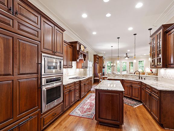 Step into the timeless elegance of 4164 English Garden, a meticulously crafted residence that harmoniously blends sophistication with functionality. This stunning home offers four bedrooms, each with its own en-suite bathroom, four full baths, and one half bath, ensuring every family member or guest enjoys complete privacy and comfort. Premier Custom Homes built this masterpiece, with every detail designed to enhance both living and entertaining experiences. The heart of the home is the gourmet kitchen, where granite countertops, a tile backsplash, and a suite of high-end appliances combine elegance with practicality. Enjoy cooking with the gas cooktop and vent hood, the KitchenAid microwave and wall oven, and the newly installed 2025 Bosch dishwasher. A built-in refrigerator enriches the kitchen's seamless design. Designed for efficiency, the kitchen also features pantry cabinets equipped with Shelf Genie, offering easy organization and accessibility. Adjacent to the kitchen, French sliding doors open into the dining room, which is elevated by a tray ceiling. This space is ideal for intimate dinners or larger gatherings, where natural light filters through the bay window, creating a warm and inviting ambiance. The first-floor primary suite is a private retreat, offering a custom walk-in closet and a spa-inspired bathroom. The primary bathroom is adorned with travertine countertops, a double vanity, water closet, walk-in rain shower, and a luxurious whirlpool tub. A second main-floor bedroom, currently serving as an office, includes its own en-suite bathroom, offering flexibility for work-from-home arrangements or guest accommodations. The home features 10-foot ceilings on the first floor and 9-foot ceilings on the second floor, creating an airy and open atmosphere. Thick crown moldings and hardwood floors throughout much of the first floor add to the home's charm. A bonus room with a wet bar and beverage cooler elevate its entertainment capabilities. Storage is abundant with a pull-down attic, spacious closets and attic eave space, ensuring everything has its place. Outdoors, the property continues to impress. The backyard and side yard are adorned with Belgrade pavers, creating an elegant and low-maintenance landscape. A covered veranda, equipped with roller shades and wood privacy shutters, overlooks the fenced backyard and patio, providing the perfect setting for relaxation or al fresco dining. The irrigation system ensures the lush greenery is always well-maintained. The home boasts a host of newer mechanicals and systems starting with its new roof installed in 2021. The climate control systems have been updated, with the upstairs HVAC replaced in 2018 and the downstairs system upgraded in 2019. A tankless water heater was installed in 2008. Enjoy quick and easy access to I-440, putting RDU International Airport just minutes away. You'll also find top destinations like Rex Hospital, Crabtree Valley Mall, The Village District, and North Hills Shopping Center all within close reach. Every detail of 4164 English Garden has been thoughtfully considered and this lovely home is waiting to welcome its next chapter of memories.