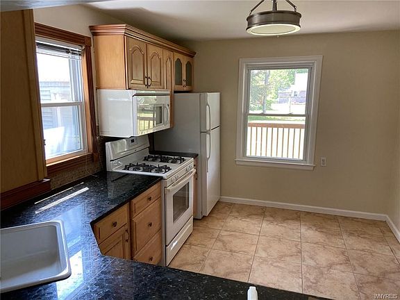 Beautiful house now available - nothing to do but move right in! Well maintained home and recently remodeled. Some of the updates include the furnace, hot water tank, windows, carpeting, painting, kitchen & bathroom. The first floor is extremely convenient having large two bedrooms, full bath, laundry room, and eat-in-kitchen all accessible with additional (2) bedrooms upstairs. Private covered deck with skylight overlooking the large yard. Corner location for additional space and convenience. 1.5 detached garage and large blacktopped driveway for ample parking. Amazing opportunity for investor looking to rent out house. Clarence school district, close proximity to Main Street & Transit Road as well as the NYS Thruway I-90.