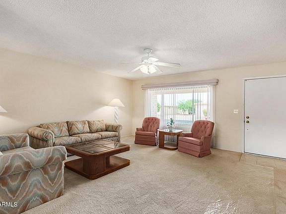 LOVELY, WELL CARED FOR HOME IN 55+ SUNLAND VILLAGE. 2 BR, 2 BATHS, LIVING ROOM + DEN-PERFECT FOR OFFICE, CRAFTS, EXTRA BED; CORNER LOT, FACES WEST. ALL WINDOWS REPLACED EXCEPT BATHROOMS. NEW ROOF IN 2020! MODEL 300 WITH ADDED SQ.FT. SO NOW IS 1444 SQ.F. HALF BLOCK WALL ON 2 SIDES-FULL ON OTHER SIDE-GREAT FOR SMALL PETS. 2 CAR GARAGE WITH GOLF CART STORAGE, & BUILT IN CABINETS. MOST FURNITURE CAN BE PURCHASED IN SEPARATE BILL OF SALE OR BE REMOVED. COUCH IN DEN IS HIDEABED. DELICIOUS TANGELO TREE IN BACKYARD. NICE COVERED PATIO OFF DINING AREA, QUICK CLOSE POSSIBLE.