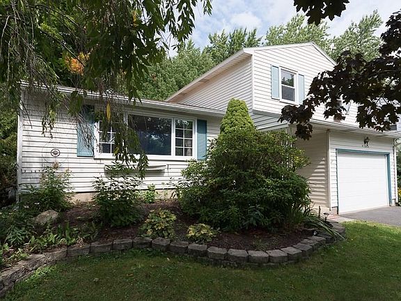 Welcome home to a huge updated kitchen with plenty of oak cabinetry for storage and counter space galore. Sunroom off the back provides plenty of light with cathedral ceilings. Family room with fireplace, 2 y.o. roof, some newer windows, formal dining room and large living room. Home backs up to town park with access through the back yard. New Kenmore washer and dryer stays. Home is located in Castle Nova and is very convenient to great shopping and restaurants.