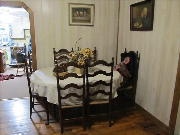 One Floor Living in this Sandy Lake Home with Updates! New Roof & Windows, Hot Water Tank, Newer Furnace and Updated Bath. Eat-In Country Kitchen Plus Dining Room with HW Floor, and Full Basement. Covered Front Porch and Covered Patio, Perfect for Entertaining or Just Relaxing Outdoors. Situated on 3.85 Acres with 28x38 Garage, Barn and Chicken Coop. Newer Garage Door.