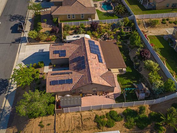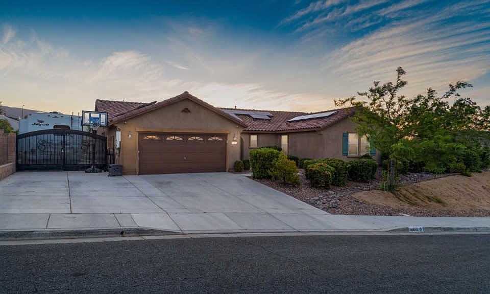 Gorgeous single story home in West Palmdale with RV access. This home is energy star certified with a solar lease and desert landscape in the front yard. The house features a formal entry, a spacious living room connected to the dining room and kitchen making it perfect for entertaining. The house has new tile flooring throughout. The kitchen has been updated with painted cabinets and new back splash. There is a spacious pantry/laundry room with access to the garage. There is 4 bedrooms and 2 full bathrooms. The rear yard is fully landscaped with a covered patio and a pond/water feature.
