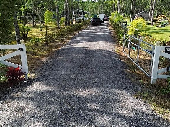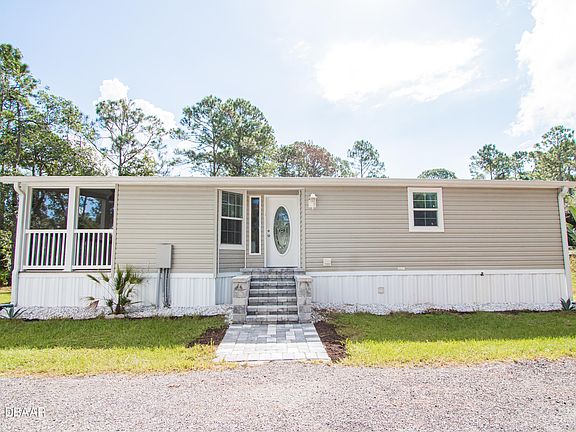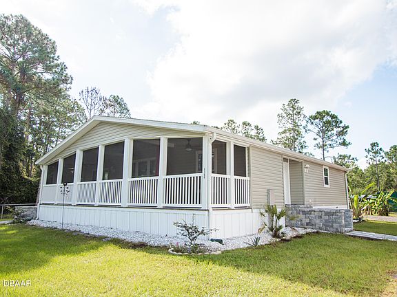 2.5 acres including this 2019 perfect manufactured home located in the peaceful area on New Smyrna Beach! This property is accessed through the front gate and long driveway past a gazebo to your home! This property is equipped for farm animals and had goats and chickens living there! Come and see where you can live on 2.5 acres!