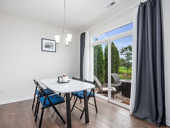 Excellent opportunity to own this like-new construction END UNIT 2Bed + SPACIOUS LOFT townhouse situated on a PREMIUM lot, with a tranquil back exposure! This townhouse offers an abundance of finest upgrades & options, to ensure total enjoyment! From the moment you step in, a welcoming Foyer will greet you and an open concept floor plan with 9' ceiling will set the tone. The main level will surely impress with high quality 7" x 1/2" thick engineered wood flooring throughout. One-of-a-kind sleek Kitchen showcasing: soft-close drawers & 42'-inch cabinets w/ Satin Nickel finish hardware, Crown Molding, Carrara Grigio quartz countertops, stainless steel appliances, a Pantry closet, and an L-shaped island providing extra counter & cabinet space! Also, the main level is equipped with smart recessed can lights, with capability to create a colorful ambiance. The upgraded staircase with Stained Rails & White Spindles is another perk worthy your attention. Upstairs, the LOFT, provides a multitude of living space options, like office, family room, etc. The Primary Bedroom is coupled w/ large walk-in closet and has an upgraded Volume ceiling, which creates unparalleled grandeur! The en-suite luxury bathroom boasts a dual sink vanity enriched with Venetian marble countertop and a deluxe shower & soaking tub wrapped in ceramic Tile! Convenient second level W&D location. A generous size second Bedroom and the hallway Bathroom complete the second level. For optimal utility, the Garage is finished with epoxy flooring and added shelving. The Patio will delight you with those serene views! Booming location, with Costco, Whole Foods and Fox Valley Mall nearby and Route 59 with all its offerings at your disposal. Less than 4 miles to Metra station. Located within the vibrant Gramercy Square community & highly regarded 204 school District, this townhouse is a must see!
