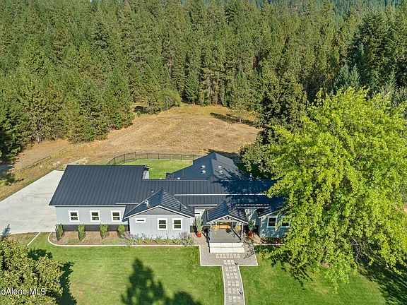Unbeatable Nettleton Gulch location! 2.3 acres of quiet country living, just minutes from everything CDA has to offer! Completely remodeled in 2019, this beautiful rancher offers single level living featuring 3 bedrooms, office, 2.5 baths, and an attached garage with 3 10x10 doors. Features? Meile/Bosch/Wolf appliances, Grohe faucets, wine fridge, custom walnut cabinets, Silestone counters, engineered oak flooring, extra wide gas fireplace, and custom entertainment center. Comfort? New Milgard windows in 2019, all Hardi siding, spray-in foam insulation, metal roof, heated master bath floor. Tech? Home automation system, Eero wifi, Ecobee thermostat, numerous smart switches, structured wiring cabinet, rooftop digital TV antenna, Ring doorbell & cameras, Hunter Douglas irrigation controller. Private 7 GPM well, 3000-gallon cistern with constant pressure pump, new septic in 2019.