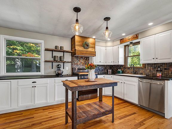 This beautiful, well-maintained country home sits on a gorgeous, 1 acre lot surrounded by rolling hills and fields. The main floor has 2 bedrooms and a full bath, a beautiful updated kitchen, dining room with a gas stove & a fireplace and original hardwood floors. Upstairs includes one bedroom, 1/2 bath, and a large room perfect for a playroom or entertainment room. The basement has a large living area with a pellet stove, a laundry room/mudroom, 1/2 bath and a nice storage area with a work bench. Relax around the fire pit in the peaceful backyard with beautiful trees and a deck perfect for entertaining.