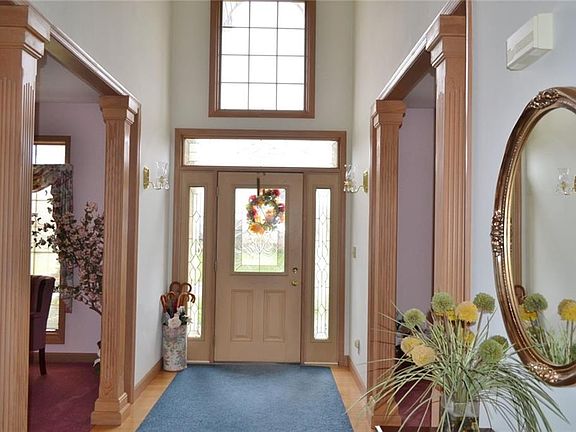 Absolutely stunning! Custom built, brick, 4 bed, 3.5 bath home in Ash Brook Est Sub. Over 4900 sq.ft. Beautiful solid wood trim/doors + solid maple floors in entry, family, dining, kit & hall. 10' ceilings on 1st floor. Formal liv & din rms + extra spacious 1st floor great rm. Gorgeous kit w/custom maple cabinets, built-in double wall ovens & cook top, Corian counter tops. Kitchen opens to 19x13 brkfst rm & great rm Amazing master suite w/bay window & gas log F/P. Incredible, roomy mstr bath w/dbl solid surface sink top, jet tub & glass walled corner shower. Massive custom walk-in closet is a must see! 2nd first fl bedrm & full bath w/walk-in shower. 1st fl laundry w/wash sink & built in ironing board & ceramic fl. Huge bsmt w/9' ceiling & poured concrete walls & partial crawl space w/concrete fl. High eff. gas furnace, A/C, W/H & water softener all new '18. Pella windows w/blinds built-in. Professionally landscaped frt & rear yard. Must see! Close to I-70 for Cols/Dayton commuters.