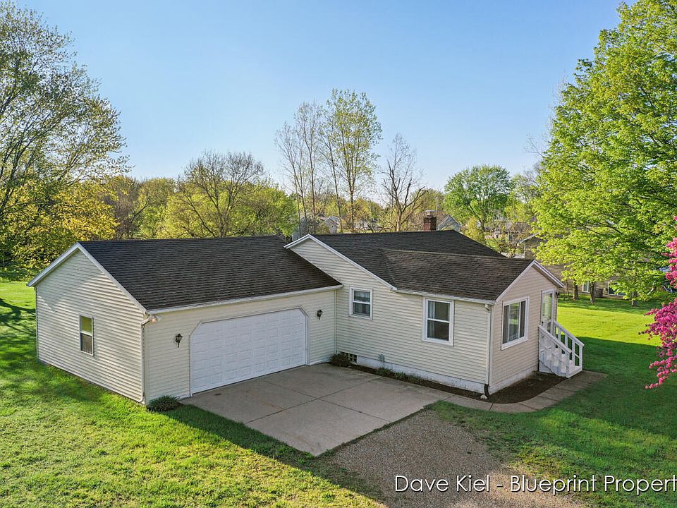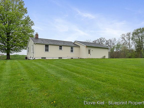 Middleville home for sale on 1 acre in an excellent location! Well situated just on the edge of the country in the Thornapple Kellogg School District; this property is mere steps from schools, parks, playgrounds and shopping! A perfect price point and simple living await with a large green grassy lot, evening views, fresh air, and opportunities in abundance! This home has been well maintained over the years and with a touch of updating can fit shine like a new home at a fraction of the price. The main floor offers 2 bedrooms, sunny living room, simple kitchen, an added dining room/den on the front of the house, and 2 stall attached garage. The full basement offers plenty of room to add finished living space down the road! Call for a showing today!