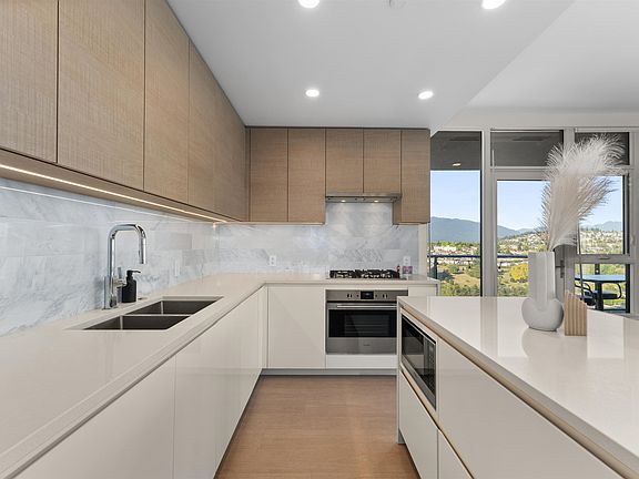 Experience unmatched luxury in your own elevated VIEW condo.Gilmore Place III,Brentwood’s premier new development,creates a vibrant community with world-class resort-style amenities.This bright NE-facing 2 bedroom 2 bath plus den home offers over 990 sqft of airy,spacious living space with breathtaking mountain vistas.The modern two-tone kitchen features premium European appliances, including dual 24-inch Fulgor Milano refrigerators and a gas range. The living and dining areas flow seamlessly onto a 230sf covered wrap-around patio, perfect for indoor/outdoor living. Enjoy access to over 75,000sf of amenities, including a fitness center, pools,bowling alley,study and business rooms, karaoke spaces, and more!Conveniently located near Gilmore Skytrain,the future T&T,and the Amazing Brentwood