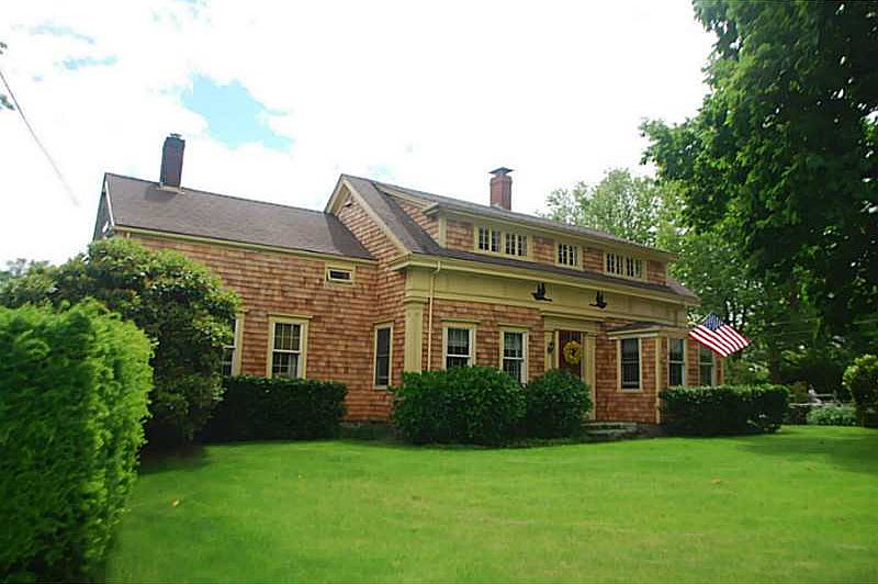 Charming turn of the century cape on 2 acres. Period details with new kitchen, fir flooring, fireplace, built in , stonewalls, matured gardens, decks, work shop, 2 garages and rental cottage with $12,000/yr income all overlooking small pond.
