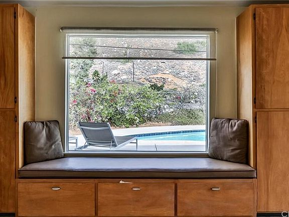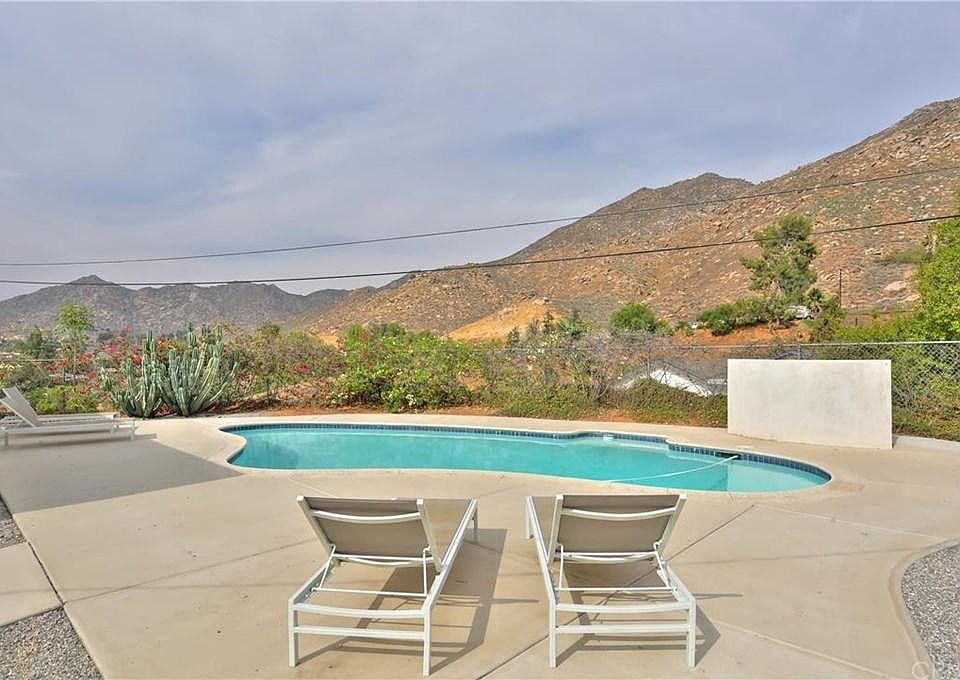Tucked away in the University Hills neighborhood, just below the Box Springs Mountains, lies Quail Road. This quiet cul-de-sac is home to several of the most stunning examples of mid-century modern architecture in Riverside. With clean lines and simple design this 4 bedroom, 2 bathroom home has almost 2,000 square feet. A large picture window in the living room overlooks the drought-tolerant landscape in the front yard and the neighborhood below. Ceramic tile covers the floor through out the living space, bathrooms, hallways, and bedrooms. The kitchen is open to the dining room and living area; and has granite slab counter tops, stainless steel sink and appliances, and a large walk-in pantry. The back of the house offers a family room or bonus room with built in cabinets, window seat and sliding door to the pool. The bathrooms offer a neutral color palette and modern fixtures. The exterior of the home offers great outdoor entertaining with a concrete patio, barbeque area, and sparkling pool. Amazing views of the Box Springs Mountains and the iconic "C "on the peak and easy access to hiking and running trails. This is a wonderful opportunity to live in a beautiful modern residence on an iconic street close to a world class University. This home is available and ready for move-in NOW. (home will be rented out UNFURNISHED), home was staged for photos. Thank you.... Tenant pays utilities, two small pets allowed, no smoking. :)