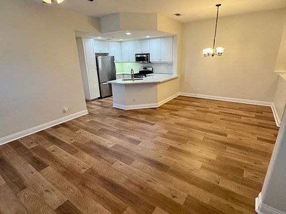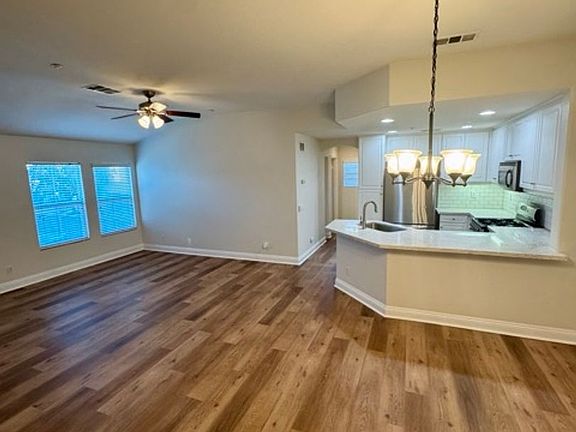 Open concept layoutPeninsula with additional seatingLarge walk-in closetSubway tile backsplashWhite cabinetryUpgraded plank flooringQuartz countertops