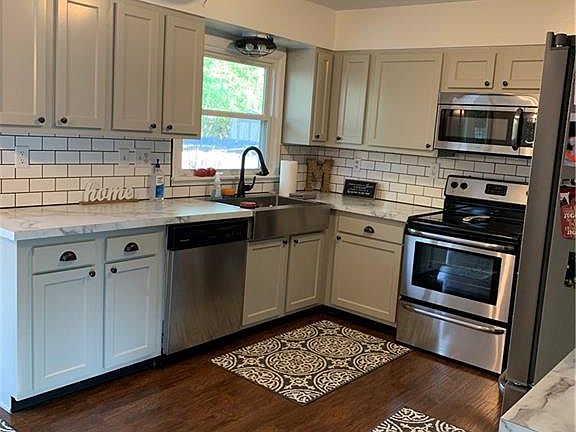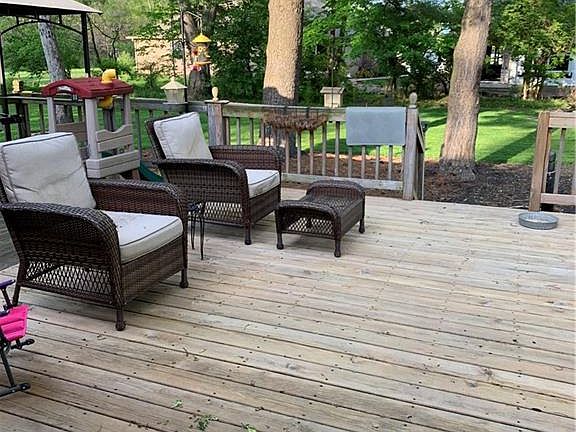 Farmhouse welcome when you enter. All the updates todays buyers are looking for. Great room wth barn wood wall. Kitchen just re done with mindful gray cabinets and gorgeous white subway tile and a farmhouse sink with coordinating gorgeous countertops. Barn doors in several rooms. Dining room was a bedroom if you need that 4th bedroom it can be changed back. Bedroom 3 has ship lapped walls and it is used as an office. Home has 2 master bedrooms.2 Full baths. A large lot of nearly an acre with lots of fun recreations in the massive back yard off of the huge deck. Gorgeous trees. Make this your staycation. Furnace and AC less than 1 year. Roof approx 6 years. Appliances 4 years. Interior inside repainted. Yard just mulched. Ready for you.