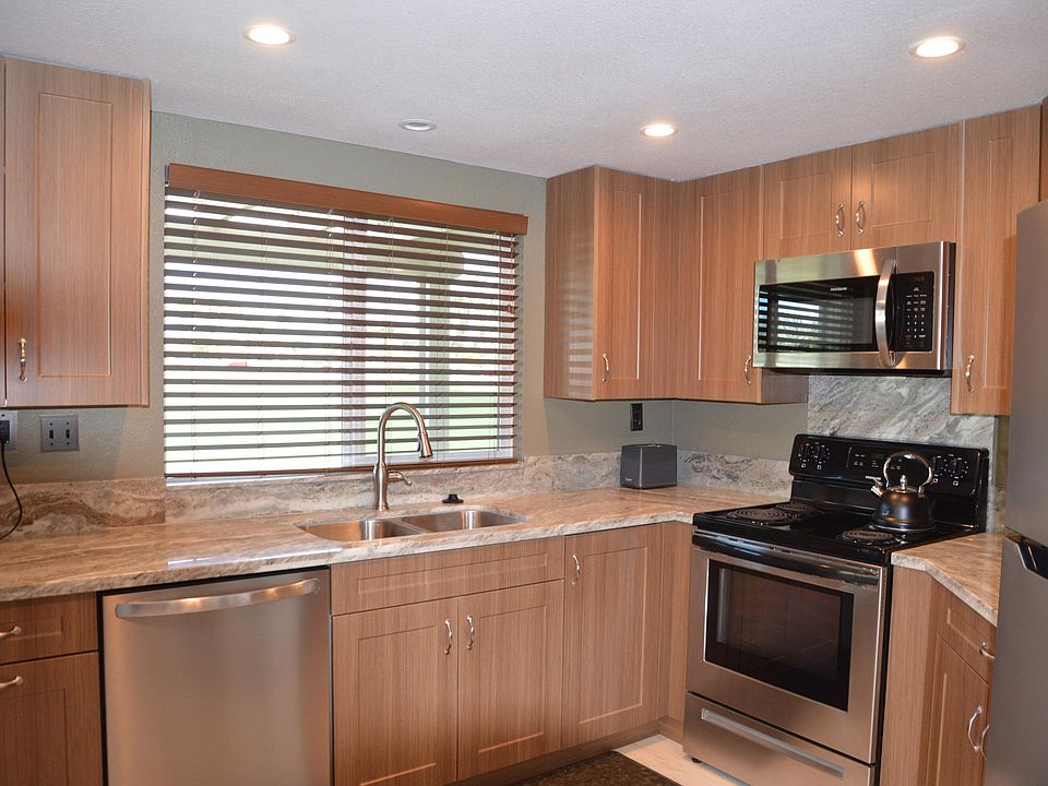 New light fixturesNewly remodeled kitchenVolume ceilings
