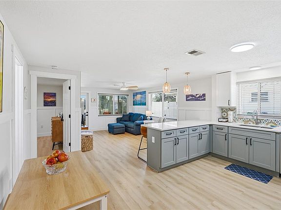 Quartz countertopsGorgeous coastal finishesOpen floor planCarport storage roomLight-filled florida roomLandscaped and fenced backyard