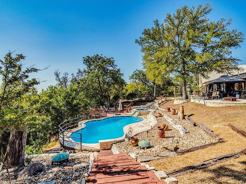 Nestled on 1.8 pristine acres in the heart of the Texas Hill Country, this extraordinary estate offers an unparalleled blend of luxury, privacy, and natural beauty. Designed for both relaxation and entertaining, this home boasts sweeping panoramic views, a resort-style pool and spa, and a covered patio perfectly positioned to enjoy breathtaking sunsets and tranquil surroundings. Inside, you’ll find an updated gourmet kitchen featuring high-end appliances, custom cabinetry, and sleek countertops, ideal for the home chef or entertainer. The spacious master suite is a true retreat, complete with a spa-like en-suite bath, generous walk-in closet, and serene views of the surrounding landscape. A bright and airy sunroom offers the perfect space for morning coffee, reading, or soaking in the scenery year-round. Additional features include an RV carport, a separate storage shed, and expansive outdoor spaces that invite indoor-outdoor living. Whether you're hosting guests or seeking your own private sanctuary, this property delivers unmatched comfort and elegance in a truly special setting.