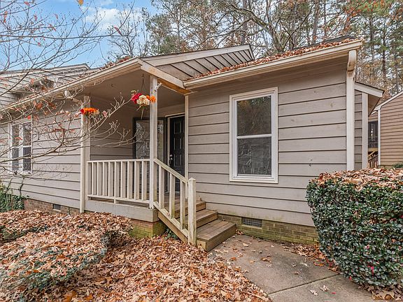 Discover exceptional value in this fully upgraded one-story end-unit townhome at rare price point! Step inside to a bright and spacious family room featuring hardwood floors, a wood-burning fireplace, soaring cathedral ceiling, and a dedicated dining area, perfect for everyday living or hosting guests. The renovated kitchen sparkles with stainless steel appliances, brand-new LVT flooring, new granite countertops, and freshly refinished cabinetry. Both bathrooms have been updated with modern fixtures and contemporary vanities for comfort and convenience. Enjoy privacy in the primary suite, complete with its own attached full bath. Major upgrades provide peace of mind, including a brand-new HVAC (2025), new water heater, new bifold closet doors, and fresh interior paint throughout. The Applecross Townhome community offers a low-maintenance lifestyle, with lawn care, landscaping, and exterior building maintenance all covered by the HOA. Relax on the walkout deck, perfect for grilling or unwinding while taking in the surrounding mature trees and nature. Located just off Cary Parkway, this home offers unbeatable proximity to shopping, dining, parks, and everything the Triangle has to offer—while still maintaining a peaceful, tucked-away feel. A move-in-ready home with thoughtful upgrades, ideal for those seeking comfort, convenience, and incredible value in Cary!