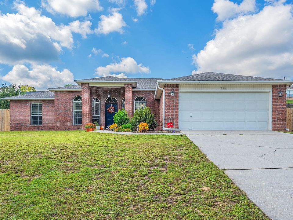 Welcome to 417 Bobby Dr, a beautifully maintained 3 bedroom, 2 bath home with a new roof (2024), water heater & HVAC about 5 years old. Step inside and you'll love the open, functional layout featuring high ceilings, spacious rooms, and a bright, airy feel throughout. The kitchen is a chef's delight with an island, pantry, and abundant cabinet space--perfect for everyday living or entertaining. Enjoy both a cozy breakfast nook and a formal dining room, plus a versatile office/flex space to suit your needs. The generous master suite easily accommodates larger furniture and includes a private bath with dual vanities, a garden tub, and separate shower.Outside, you'll find a low-maintenance yard complete with a garden shed, giving you extra storage without the upkeep.Newer privacy was installed recently. Located with quick access to local bases, shopping, dining, and the Emerald Coast's beautiful beaches. There is also a community park less than 5 minutes away providing a great local escape!