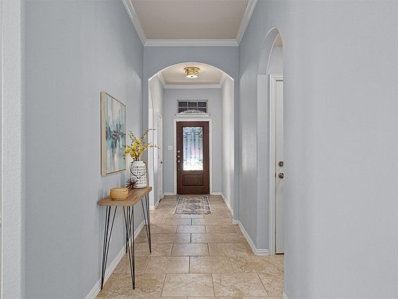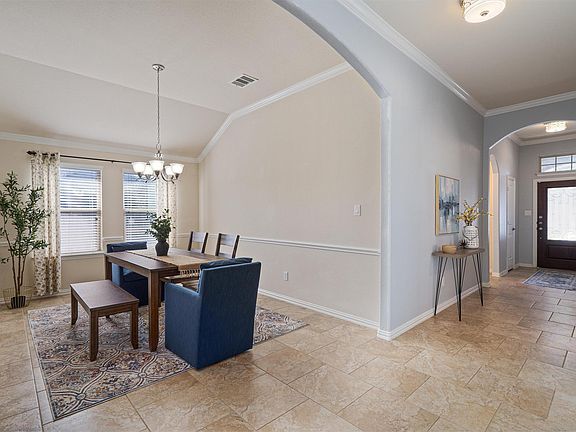Welcome to this charming Teravista home offering great curb appeal, an open and functional layout, and beautiful tile flooring throughout the main living areas. The spacious living room flows effortlessly into the kitchen and dining area, creating an ideal setup for both everyday living and entertaining. The kitchen features abundant cabinet and counter space, a center island, and a cozy eat-in dining nook perfect for casual meals. The generous primary suite offers a relaxing retreat with a soaking tub, separate walk-in shower, dual vanities, and a spacious walk-in closet. Three additional bedrooms and a nearby full bath provide comfortable accommodations. Step outside to a fully fenced backyard with a covered patio and extended seating area, perfect for relaxing, dining, or enjoying the outdoors. Located in the highly desirable Teravista community, residents enjoy access to top-tier amenities including multiple pools, a fitness center, playgrounds, tennis courts, walking trails, a clubhouse, and an 18-hole championship golf course. Located in Georgetown ISD and close to shopping, dining, and major roadways, this home combines suburban charm with city convenience. ***Recent Roof Replacement - August 2025***