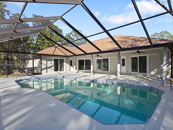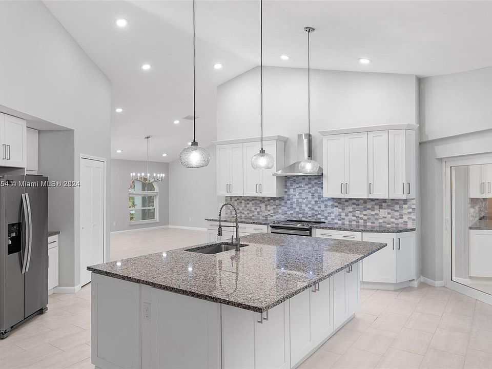 Easy to view last min. Showings are welcome- Designer-remodeled impeccable & spacious 4 bed/3 bath pool home with a beautiful serene aesthetic! Everything about this home is bright & airy. Dramatic vaulted ceilings throughout the main living areas with a chef's kitchen featuring stainless steel appliances, granite counters and a massive island for entertaining! Kitchen area features a fireplace and views out to the expansive pool deck area complete with outdoor shower. Modern 12x24 tiling throughout the entire home. Property sits on a large and very private 1/2 acre lot with lush landscaping and mature palms. New Roof and A/C 2021. Please mark as favorite so when the property becomes activate you will be notified.