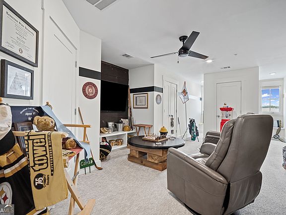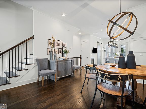 Stunning townhome in Woodstock's best amenity neighborhood! The Alexander plan by JW Collection founded by John Wieland. This home has left no details out! 4th floor walkup attic was converted to an extra bonus room for added entertaining or an extra bedroom. This home is so well appointed with brick walls, gorgeous lighting, gleaming real hardwoods throughout. Stainless steel appliances in a beautiful open kitchen with view to great room. Cozy up in front of your fireplace and enjoy entertaining with surround speakers in ceiling. Owner's suite is spacious with beautiful brick walls. Split vanity in your owner's bath that is trimmed out with tile and glass doors, and vessel sinks that add flair. Owner's closet has wood shelving built in and has lots of storage. Oh, and you can keep it all clean with a central vacuum system built in! The lower level has a great space for friends and family to visit with a large bedroom and bath that has barn doors and a built-in desk. The rear entry garage has a cool custom floor and storage. The upper level walk up attic space has been completely finished out with a spray foam roof. This room is great for media or entertainment and has a lot of storage as well. The secondary bedrooms have custom wood trim on an accent wall. Also, both of these rooms had the tubs replaced with a standing shower with beautiful custom tile and seamless shower doors. The home has great outdoor space with a front porch off main level and lower porch off terrace level. Enjoy the covered rear deck where there is a permanent gas line, just bring your grill! This home was built by one of our renowned builders who has built with John Wieland for 35 years. No extra detail was left out!!! A must see!!!