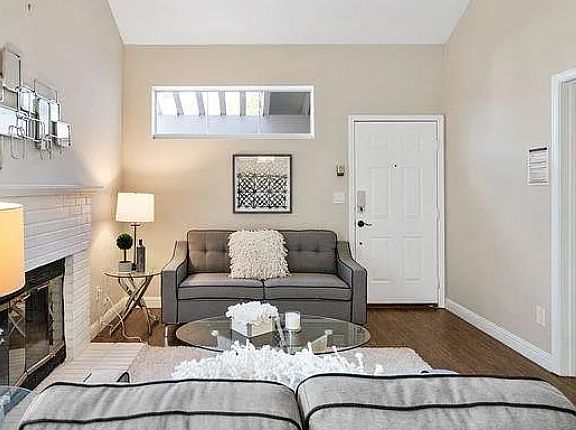 The unit locates in one of best privacy spots in the complex with open air balcony that providing a pleasing lagoon view. When you arrive in the mainlevel, an inviting living room with high ceiling gives dramatic effect, tastefully updated kitchen with abundant nature light. White cabinets, quartz countertop and stainless appliances. Two decent size bedrooms locate at each end of hallway in between of laundry room with cabinets, a storage space under staircase and an updated hallway bathroom. In upper level, Large master suite owns sole privacy and luxury. There is extra space to get cozy up with a fireplace or becomes a studying area. Ascetic master bathroom has double sinks vanity, walk in closet, tiled floor, high ceiling, skylite and more. Excellent schools and easy access to HWY 101, SFO and major companies. Parks, Bay Trail are nearby.