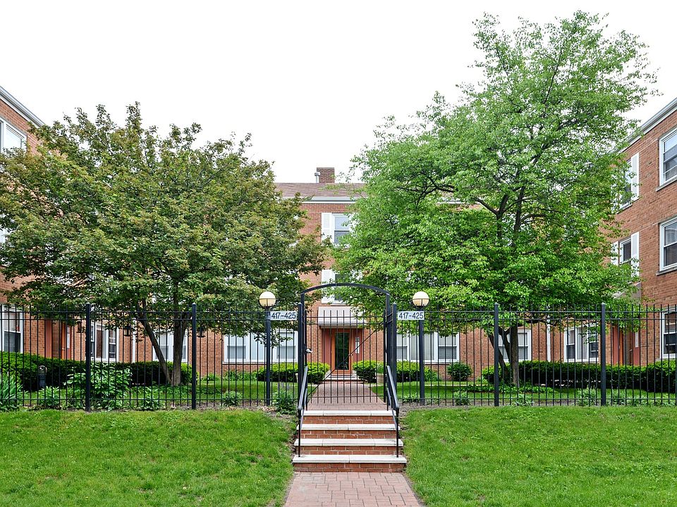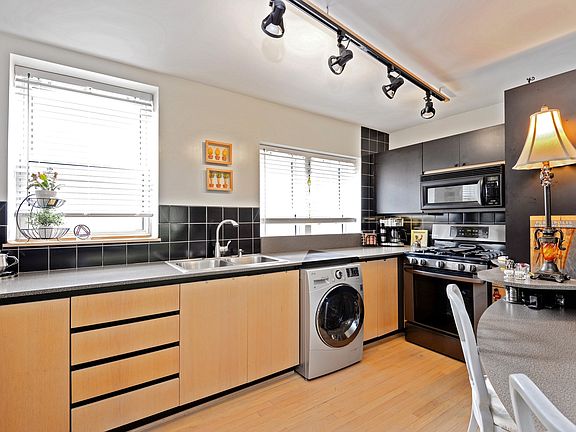 Fantastic, contemporary 2 bedroom end-unit with 3 sided exposure overlooking the beautiful courtyard! Light and bright open floor plan - great for living and entertaining. Hardwood floors throughout! Contemporary cabinetry, loads of counter space, tiled backsplash. Master bedroom with his and her closets, overhead lighting, sliding panel door and transom window. Second bedroom also has overhead lighting and a transom window. New bathroom with new tub, new vessel sink & vanity & new toilet, new wall and floor tiles - finished December 2021. Great cordless blinds on windows! This special condo unit has a large lower level office or den plus a storage area. Bike room and laundry in building too. Carpeted storage room in the basement with small windows. New washer/dryer installed in 2021. New dishwasher, new microwave and new refrigerator. Close to lakefront access with beaches and parks, convenient to public transportation via Metra and CTA, near the recently developed downtown area with restaurants, theatre, schools, retail, hospital and Northwestern University!