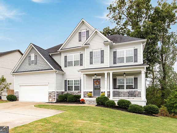 $15,000 BELOW APPRAISED VALUE! This stunning, move-in ready home offers the perfect balance of elegance, comfort, and functionality. Boasting 5 bedrooms, 5 full bathrooms, and a finished basement, every detail has been thoughtfully designed for modern living. The heart of the home is the gourmet kitchen, complete with upgraded lighting, a massive island, an eat-in breakfast area, and a walk-in pantry with custom shelving-all overlooking the two-story family room with a soaring shiplap fireplace. The main level also features a beautifully crafted home office with built-in desks and an accent wall, plus a guest suite with a full bath. Upstairs, you'll find three spacious secondary bedrooms-each with stylish accent walls-an oversized laundry room with cabinetry, and a luxurious owner's suite. The suite includes a custom accent wall, luxury vinyl plank flooring, a spa-like bath with soaking tub, shiplap detailing, custom cabinetry, private water closet, and an oversized walk-in closet with floor-to-ceiling shelving. The finished basement is an entertainer's dream, featuring a full bar, game room, living room, gym, and open flex space ideal for dining or a pool table. Step outside to a .53 acre fenced lot with a gradually sloping yard, oversized patio, and beautiful farmland views across the street. Additional highlights include wood tread stairs with chevron-pattern risers, an extra parking pad in the driveway, and an unbeatable location just minutes from I-575 via Hwy 140. All of this in the award-winning Sequoyah High School district-a rare opportunity you won't want to miss!