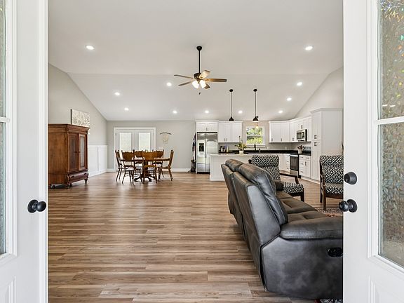 Perfect setup for multi-generational living with one level on the main and a fully finished basement! This 4 BR / 3 BA home offers a spacious main level with an open-concept floor plan, vaulted ceilings, and 3 bedrooms/2 baths on main floor. The kitchen boasts white cabinetry, built-in pantry cabinets, granite countertops, stainless appliances, and a large island. The finished basement with upgraded insulated ceilings is currently used as a mother-in-law suite, complete with a full kitchen, living room, utility area, and a spacious bedroom with a full bath. Covered front porch with fenced front yard, spacious back deck, gutter guards. Current owner invested $28,000 in additional builder upgrades beyond the original MLS sold price. Conveniently located within walking distance to the lake and less than 1 mile to K-8 school.(island in basement will not remain). Basement washer & dryer will remain. Video & audio recording will be present in home during all showings.