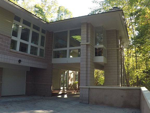 Truly custom 3 bedroom + 3.5 bath architecturally designed home by Frank Lloyd Wright surrounded by nature. Dramatic open floor plan filled with light from high efficiency Pella windows. Spacious living room with sleek built-ins overlooking woods & creek. Stunning oak central stairs with glass banisters lead to the formal entry & portico. Contemporary kitchen includes a sub-zero refrigerator with panels matching the custom cabinets, large granite island, tile floor and a cozy nook. Fantastic master suite with twin walk in closets and a luxurious bath featuring a multi-head shower & jetted tub. Large rec room & bedroom on lower level. Ample storage everywhere, including the 3-car garage and 2 workshop areas. There is a fully programmable security system with home automation for lighting and HVAC control. This beautiful home is within minutes of the UNC campus, shops and restaurants. It is also on the bus line.