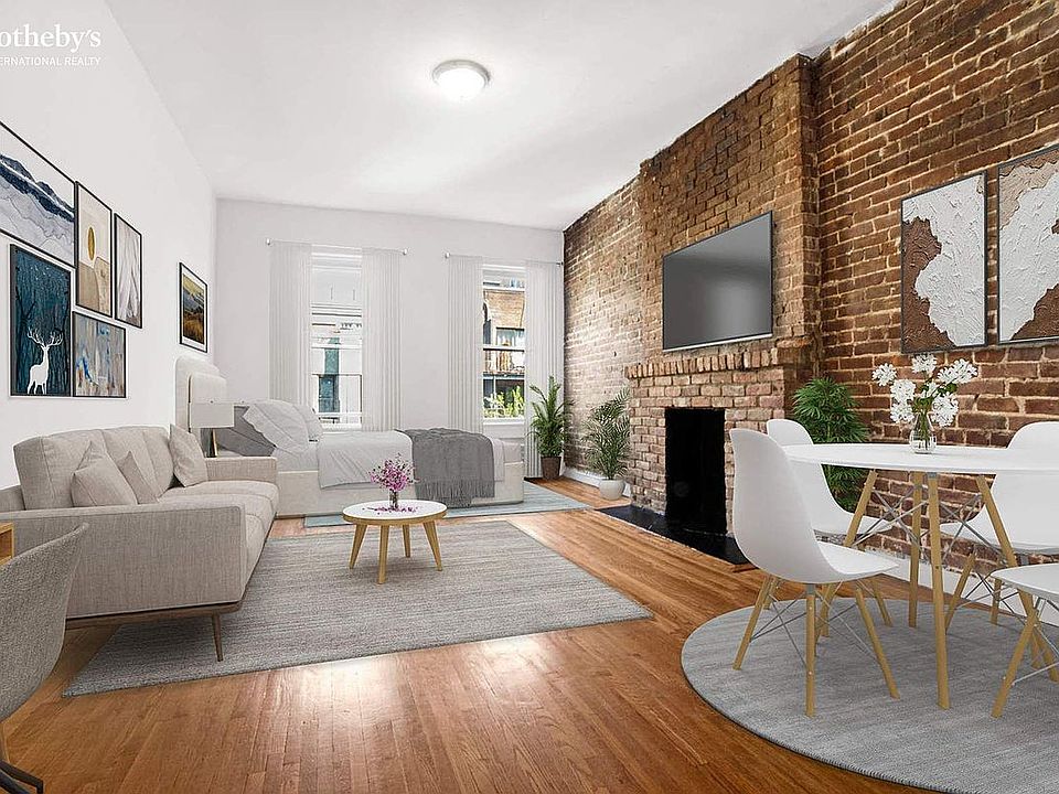 Opportunity to own a piece of New York! Co-Op apartment with bright view from this quiet north garden facing studio. Apartment features charming exposed brick, a decorative fireplace, high ceiling, updated bathroom and through wall air conditioner.